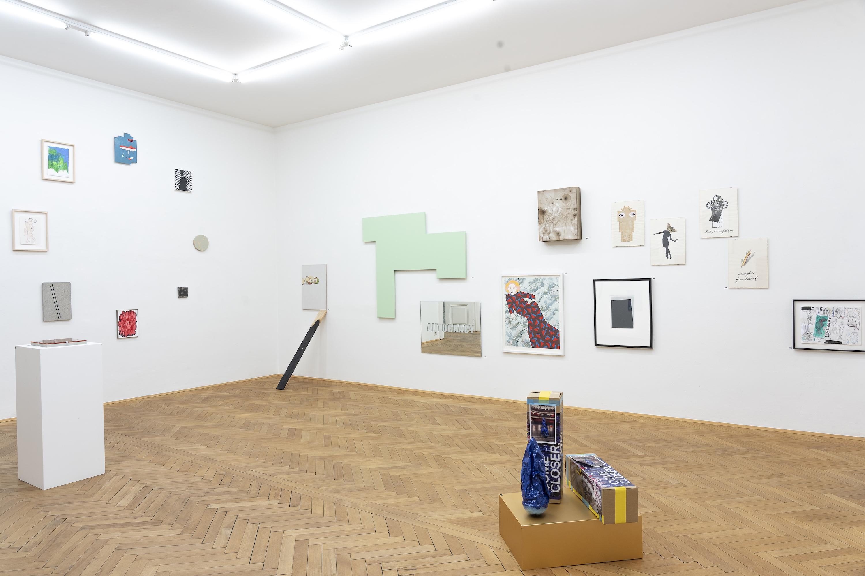 Im Dialog dazu stehen jüngere Positionen wie Stefan Glettler, Afredo Barsuglia, Petra Schweifer, Wolfgang Becksteiner oder auch Wendelin Pressl, die mit Humor, Materialexperimenten und räumlichen Interventionen neue Perspektiven auf das Dazwischen eröffnen.